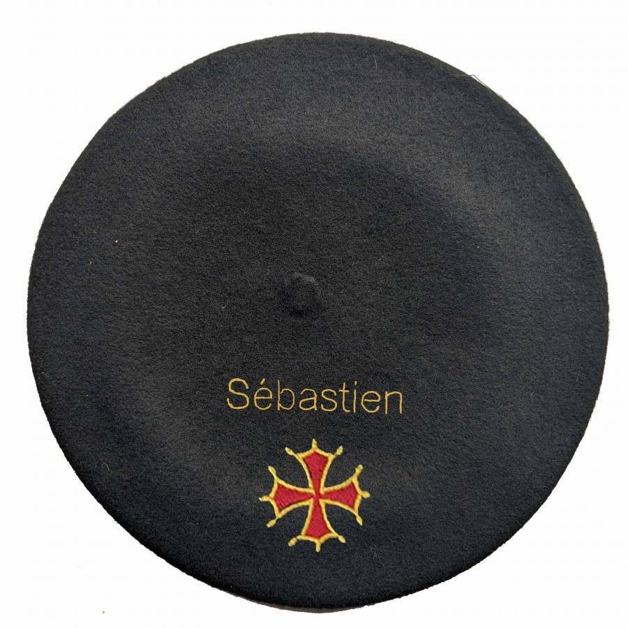 Béret croix occitane noir fabriqué à Bayonne et personnalisé à Osses