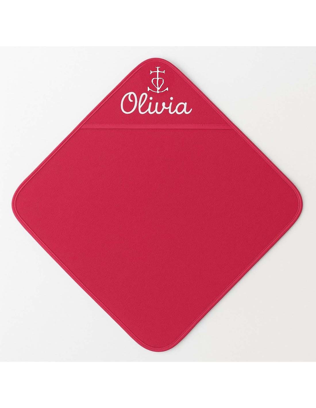Le motif est brodé sur la capuche et le prénom au dessous du motif.