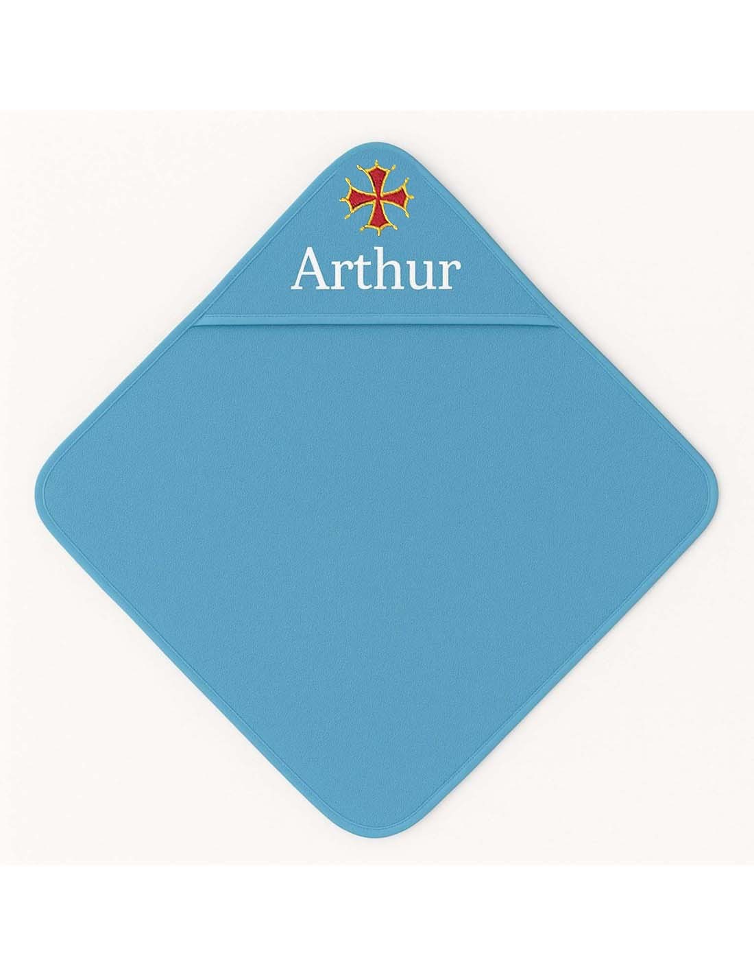 La cape de bain personnalisée avec motif et prénom est composée à 100% de coton en éponge bouclette 500g/m2.