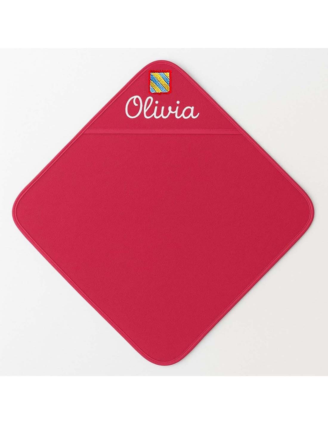 La cape de bain personnalisée avec motif et prénom est composée à 100% de coton en éponge bouclette 500g/m2.