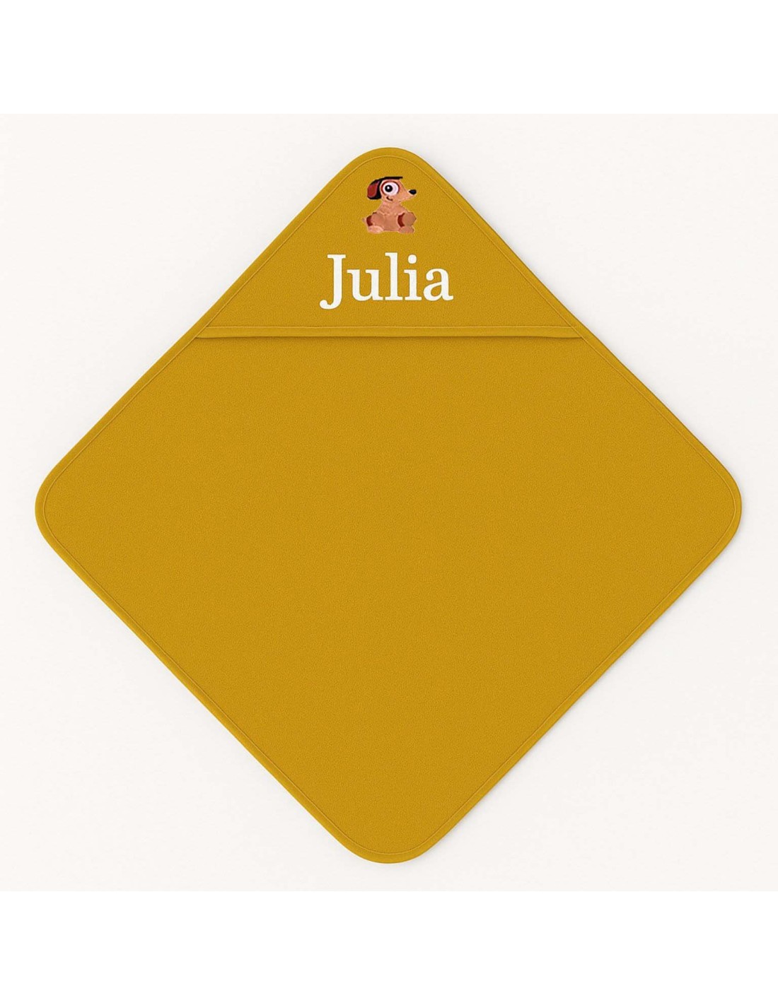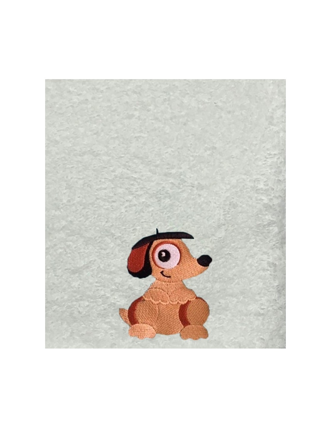 La cape de bain personnalisée avec motif et prénom est composée à 100% de coton en éponge bouclette 500g/m2.