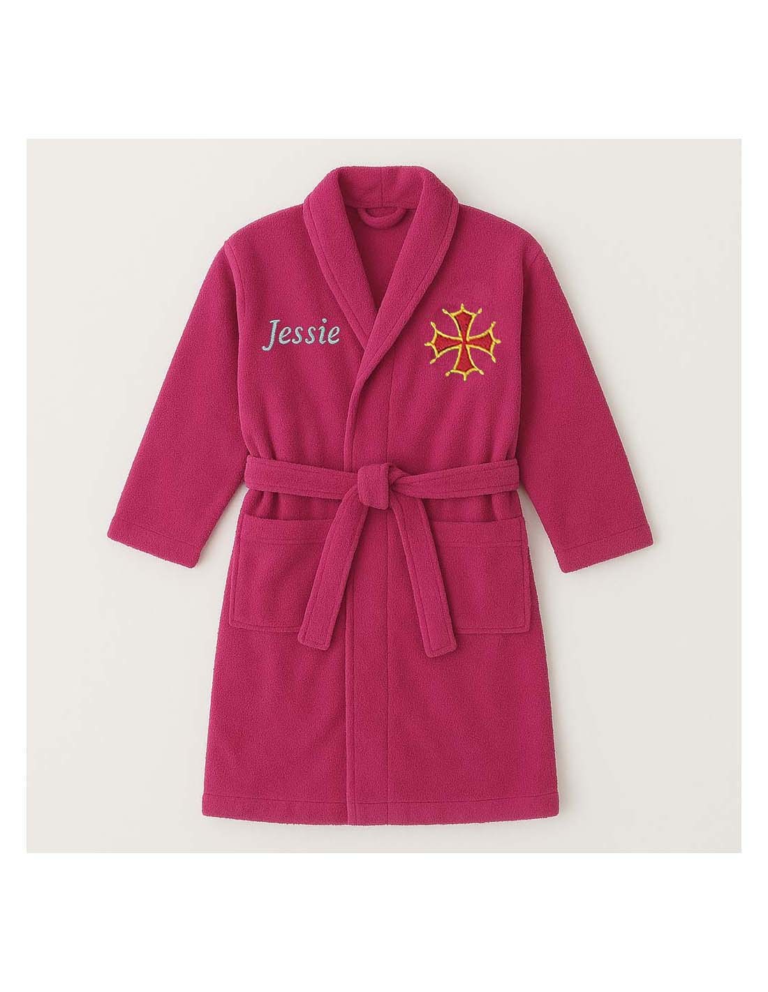 Peignoir brodé enfant personnalisé devant et  motif croix occitane