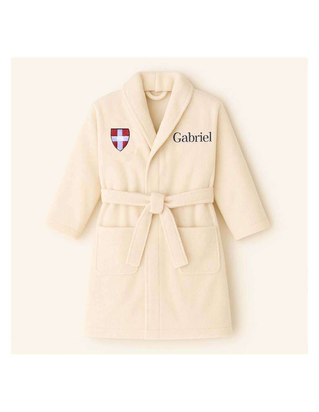 Peignoir brodé enfant personnalisé devant et motif croix Savoie
