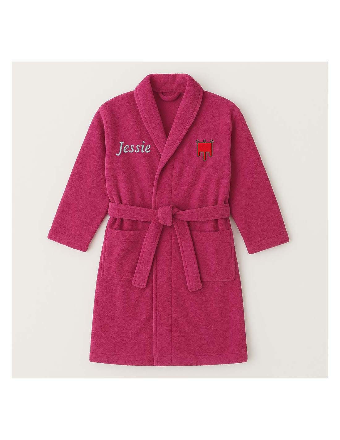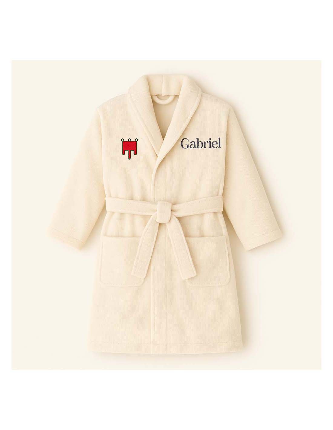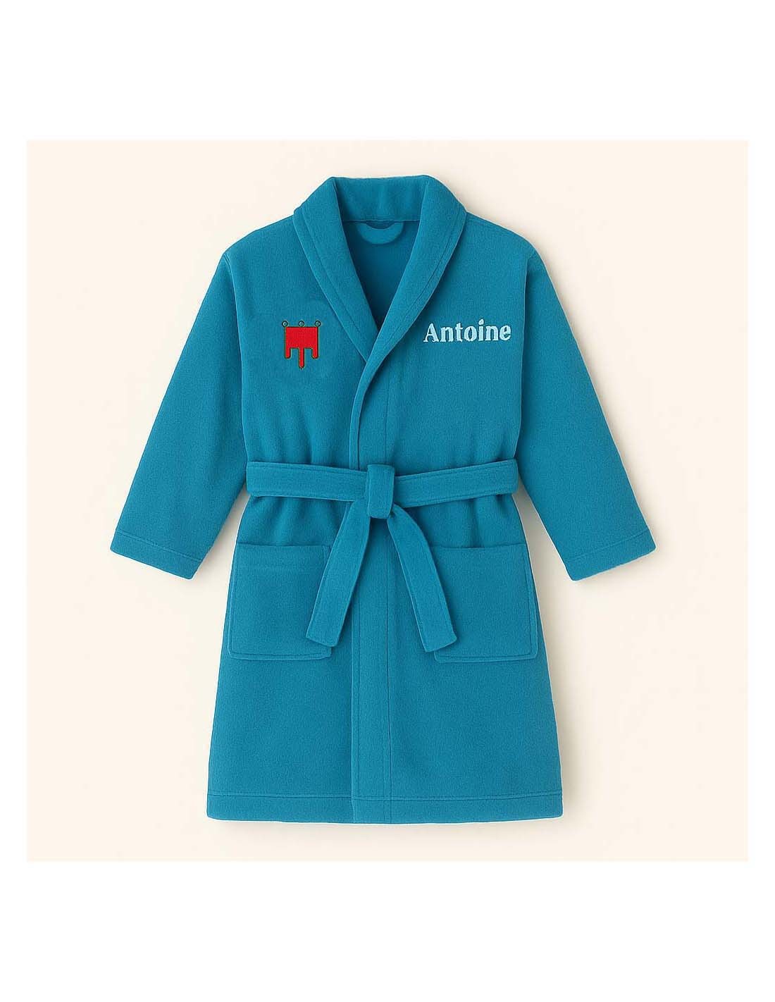 Peignoir brodé enfant personnalisé devant et motif Auvergne